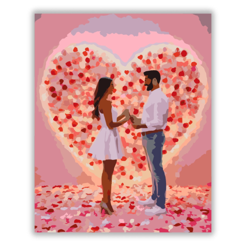 1 kép Számfestő.hu Valentin-napi Pár Szív Alakú Virágfal Előtt - számfestő készlet