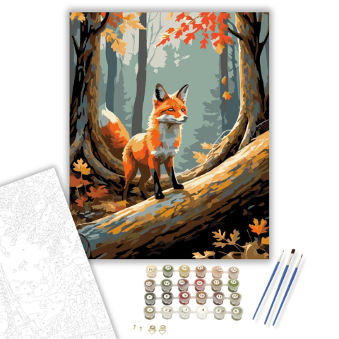 1 kép Számfestő.hu Varázslatos Őszi Erdő Rókával - számfestő készlet – 40×50 cm (Keretre feszítve)