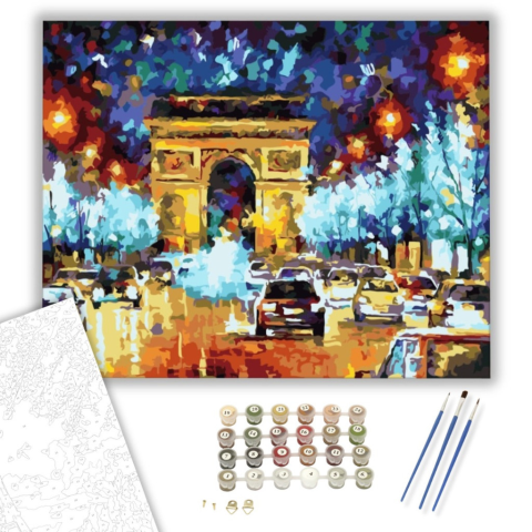 Városi Autók - számfestő készlet – 40×50 cm (Keretre feszítve) Ez a festmény vibráló éjszakai életet áraszt, amely azonnal magával ragadja a nézőt. A kép középpontjában egy ikonikus építmény áll, amely körül pezsgő városi forgalom zajlik. Az élénk színek