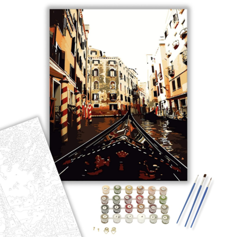 Velencei Csónakázás - számfestő készlet – 40×50 cm (Keretre feszítve) Készíts gyönyörű műalkotásokat, előzetes festő tudás nélkül! Éld át az alkotás gyönyörű pillanatait és varázslatos hangulatát! Akkor is gyönyörű festményeket hozhatsz létre, ha még nem
