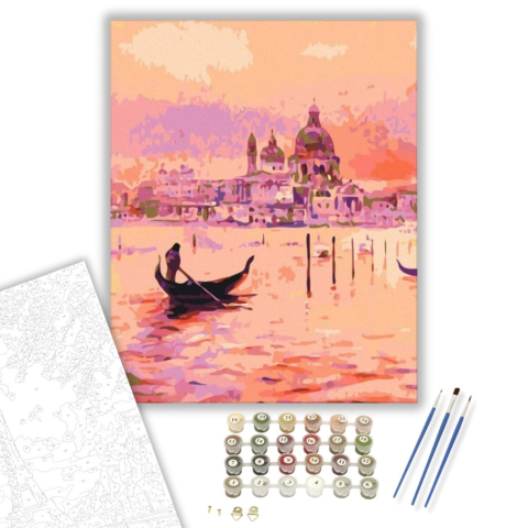Velencei Táj - számfestő készlet – 40×50 cm (Keretre feszítve) Készíts gyönyörű műalkotásokat, előzetes festő tudás nélkül! Éld át az alkotás gyönyörű pillanatait és varázslatos hangulatát! Akkor is gyönyörű festményeket hozhatsz létre, ha még nem festett