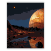 Vénusz Éjszakai Oldala - számfestő készlet – 40×50 cm (Keret nélkül) A festmény a Vénusz bolygó éjszakai oldalát ábrázolja vastag, fénylő légkörével és vulkanikus felszínével, amelyet halvány napfény és távoli csillagok világítanak meg. A kép gazdag naran
