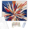 Vibráló Színrobbanás Textúrákkal - számfestő készlet – 40×50 cm (Keretre feszítve) A festmény dinamikus színrobbanást ábrázol, ahol élénk vörös, mély indigó, narancs és fehér árnyalatok törnek elő. A kompozíció energikus és drámai, a színek kontrasztja fe