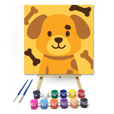 1 kép Számfestő.hu Vidám Kiskutya Csontokkal - gyerek számfestő készlet – 20×20 cm (Keretre feszítve)