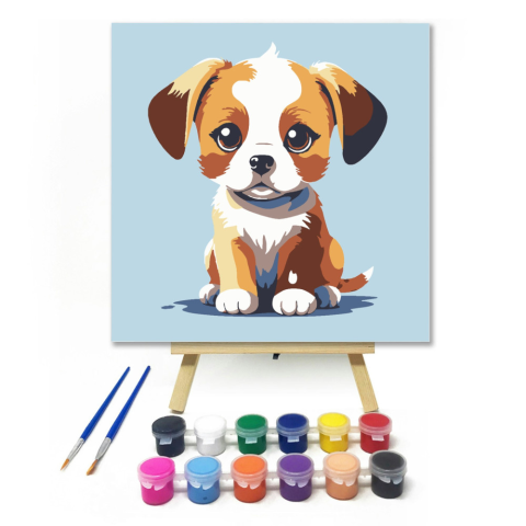 1 kép Számfestő.hu Vidám kölyök kutya - gyerek számfestő készlet – 20×20 cm (Keretre feszítve)