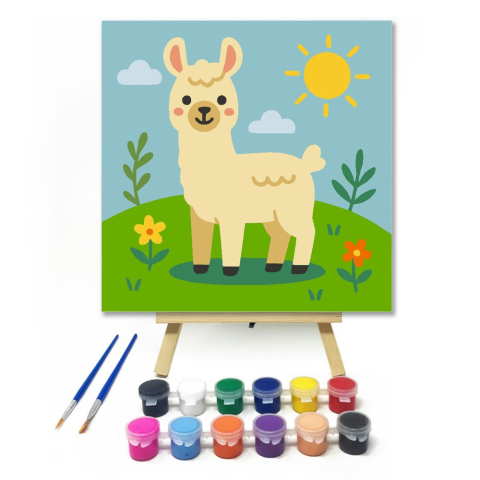 1 kép Számfestő.hu Vidám Lámácska a Napfényes Réten - gyerek számfestő készlet
