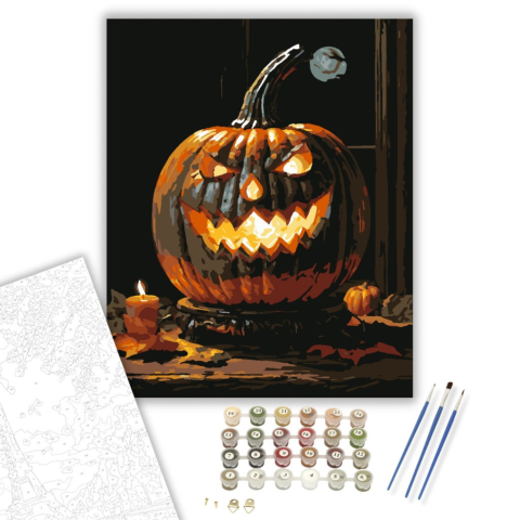 1 kép Számfestő.hu Viharos éj töklámpással - számfestő készlet – 40×50 cm (Keretre feszítve)