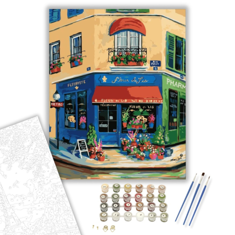 Virág bolt - számfestő készlet – 40×50 cm (Keretre feszítve) Készíts gyönyörű műalkotásokat, előzetes festő tudás nélkül! Éld át az alkotás gyönyörű pillanatait és varázslatos hangulatát! Akkor is gyönyörű festményeket hozhatsz létre, ha még nem festettél
