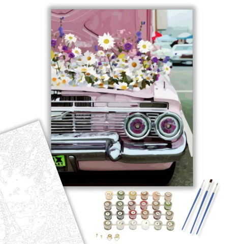 1 kép Számfestő.hu Virágos autó - számfestő készlet – 40×50 cm (Keretre feszítve)