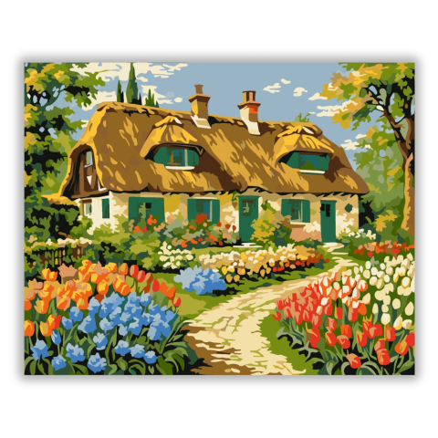 1 kép Számfestő.hu Virágos Kunyhó Idillje - számfestő készlet