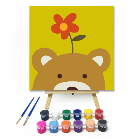1 kép Számfestő.hu Virágos Maci - gyerek számfestő készlet – 20×20 cm (Keretre feszítve)