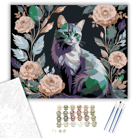 1 kép Számfestő.hu Virágos Macska Sziluett - számfestő készlet – 40×50 cm (Keretre feszítve)