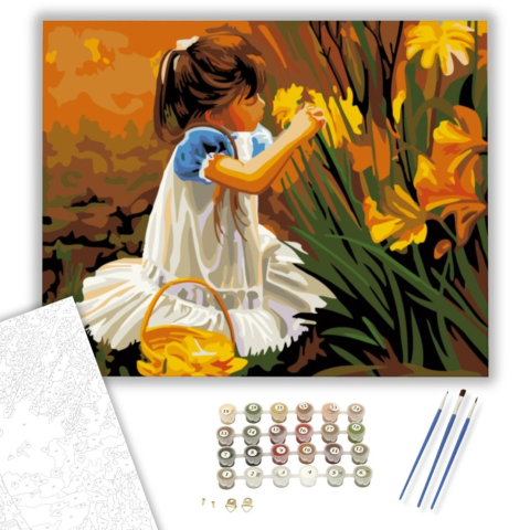 1 kép Számfestő.hu Virágszedő Kölyök - számfestő készlet – 40×50 cm (Keretre feszítve)
