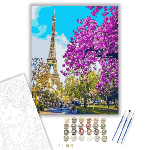 Virágzó Párizs - számfestő készlet – 40×50 cm (Keretre feszítve) A festmény romantikus hangulatot áraszt, amely Párizs tavaszi virágzásának varázsát idézi. A kép mesél egy történetet a város lüktető életéről és az Eiffel-torony büszke jelenlétéről. Az élé