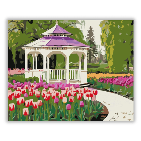 1 kép Számfestő.hu Virágzó Tulipánkert Fapavilonnal - számfestő készlet