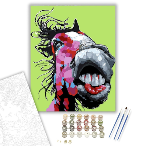 Zebra Fej - számfestő készlet – 40×50 cm (Keretre feszítve) Ez a festmény vibráló energiát áraszt, amely azonnal mosolyt csal az arcodra. Egy játékos történet bontakozik ki, ahol a színek merész kavalkádja életre kelti a kompozíciót. A háttér élénk zöldje