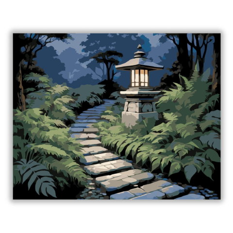 1 kép Számfestő.hu Zen Kerti Út Kőlámpással és Páfrányokkal - számfestő készlet