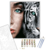 Zöld szeműek - számfestő készlet – 40×50 cm (Keretre feszítve) A kép magával ragadó atmoszférája az ember és a természet közötti titokzatos kapcsolatot idézi. Egy történet bontakozik ki a tekintetek találkozásában, ahol a vad és az emberi világ összeér. A