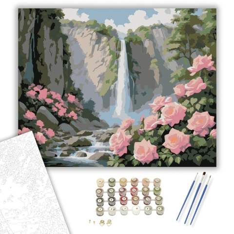 1 kép Számfestő.hu Zuhogó Vízesés és Rózsakert - számfestő készlet – 40×50 cm (Keretre feszítve)