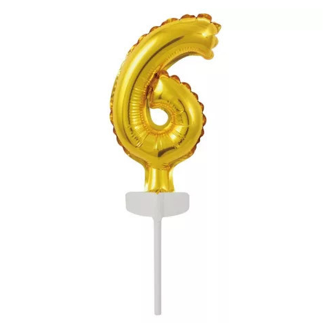 1 kép Számok Gold, Arany 6-os szám fólia lufi tortára 13 cm