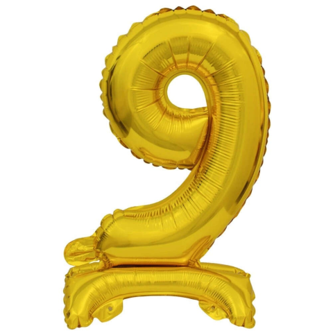 1 kép Számok Gold, Arany mini 9-es szám fólia lufi talppal 38 cm