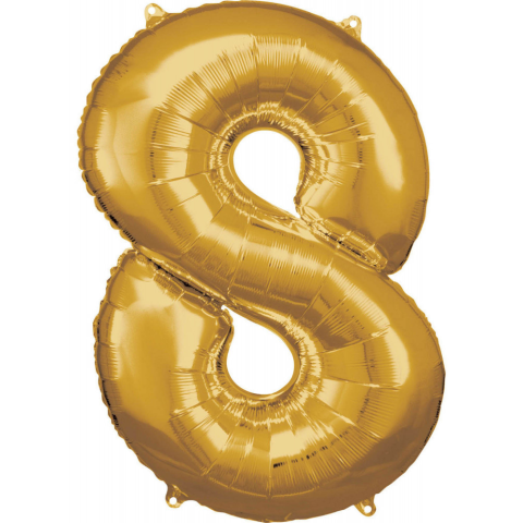 Óriás 8-as szám Fólia lufi, Gold 83*55 cm Fólia léggömb, mely héliummal vagy levegővel tölthető. A lufi önzárószeleppel van ellátva, amely megakadályozza a gáz elszökését. Mérete 83*55 cm Anyaga: fólia A lufi tartó pálca + csésze külön megvásárolható