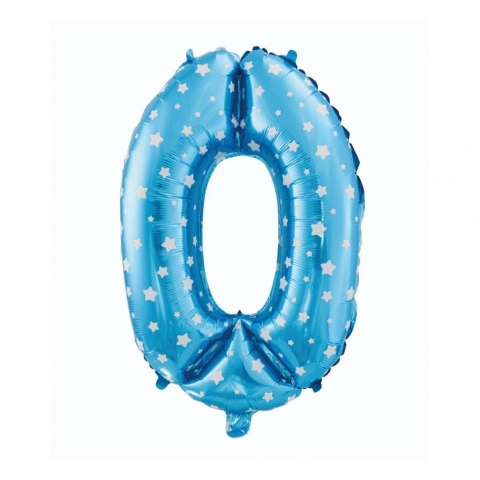 1 kép Számok Kék Blue with Stars 0-ás szám fólia lufi 61 cm