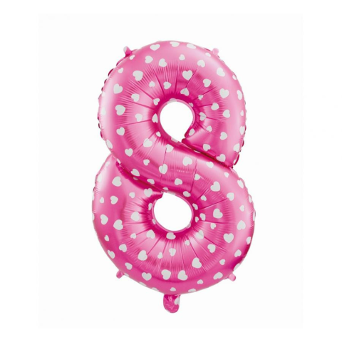 1 kép Számok Pink with Hearts, Rózsaszín 8-as szám fólia lufi 61 cm