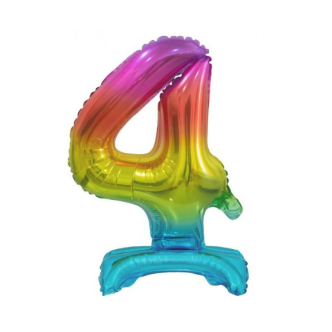 1 kép Számok Rainbow, Színes mini 4-es szám fólia lufi talppal 38 cm