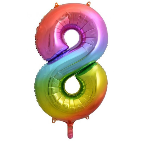 1 kép Számok Rainbow, Szivárvány 8-as szám fólia lufi 85 cm