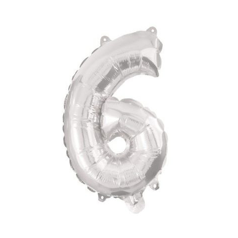 Számok Silver, Ezüst 6-os szám fólia lufi 95 cm