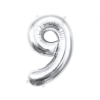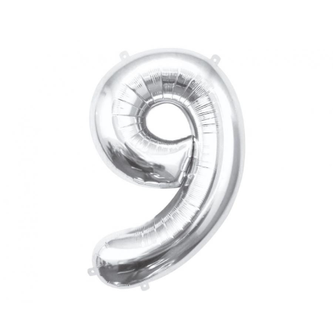 Számok Silver, Ezüst 9-es szám fólia lufi 85 cm