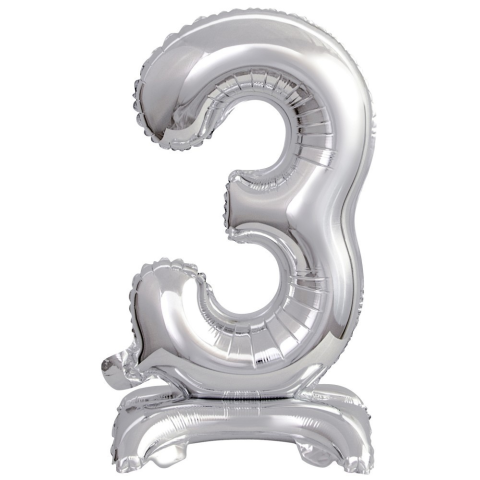 Silver mini 3-as szám fólia lufi talppal 38 cm Fólia léggömb, mely héliummal vagy levegővel tölthető. A lufi önzárószeleppel van ellátva, amely megakadályozza a gáz elszökését. Anyaga: fólia Méret: 38 cm A lufi tartó pálca + csésze külön megvásárolha