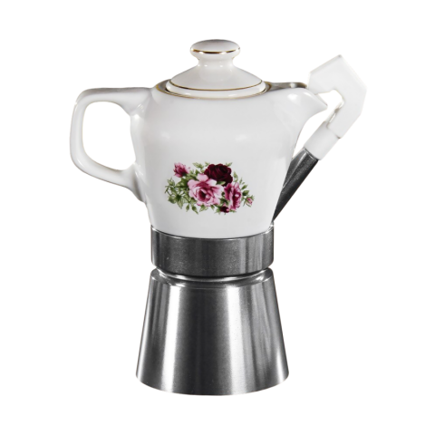 Két személyes, porcelán felső rész, hagyományos kávéfőző: