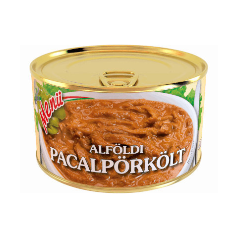 Menü 400g Alföldi pacaltpörkölt Tradicionális alföldi ízvilág egy 400 g-os adagban: a puha pacal barátságos, gazdag paprikás raguba öltöztetve, amelyet hagyma és fokhagyma karikái egészítenek ki. A könnyen felmelegíthető, készétel-formátum ideális gy
