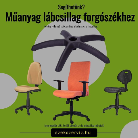 Augusztus 29. péntektől rendelhető Forgószékekhez ajánlott, öntött műanyag lábcsillag, 11 mm-es görgő csaphellyel. A forgalomban lévő forgószékeknél az egyik leggyakrabban használt lábcsillag megoldás. A lábcsillaghoz 11 mm-es normál vagy parkettagörgő h