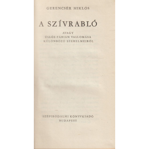 Gerencsér Miklós A szívrabló avagy Üllős Fábián vallomása különböző szerelmeiről Kissé foltos!