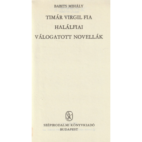 Szépirodalmi Timár Virgil fia / Halálfiai / Válogatott novellák antikvárium - használt könyv 1 kép