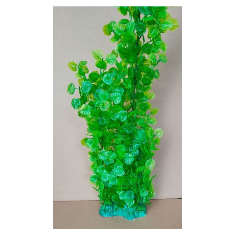Akváriumi műnövény hosszú zöld szárral és sűrű kerek levelekkel. Mutatós, természetes hatású dísz. A dekorációs szerepe mellett a díszhalaknak is rejtekhelyet nyújt, ami nagyban növeli a komfortérzetüket. Élő növényekkel együtt is behelyezhető, remekül kiegészíti a látványvilágot. Talpa nehezékként szolgál, stabilan az akvárium alján tartja a műnövényt.