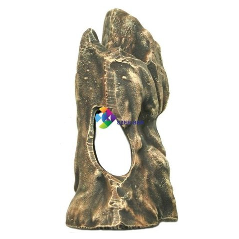 Igényesen kidolgozott műfa dekoráció akváriumba. Álló profil, falhoz állítható, lyukkal a közepén. Ideális búvóhely a kisebb díszhalak számára. Terráriumban is használható hüllők számára. A termék színe véletlenszerű.