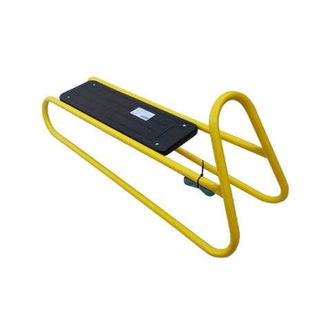 Szánkó "Speedi" - sárga szinterezett váz: egy szál 30x1,5mm-es csőből hajlított - ülőke: fekete műanyag - húzó kötéllel - teherbírás: max. 100 kg - 39x27x120 cm - súly: 8 kg