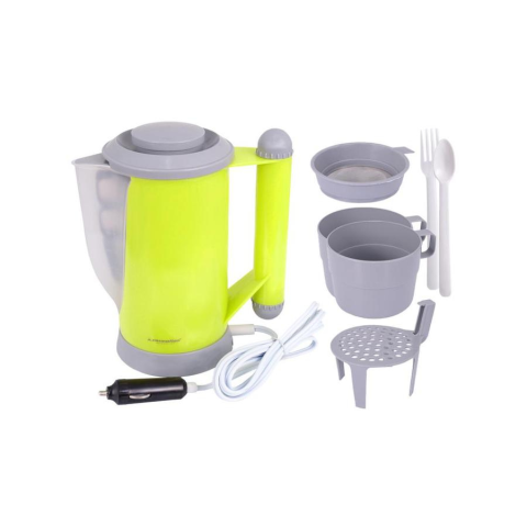 Szivargyújtóról működtethető vízforraló 2 pohárral, szűrővel, kiegészítőkkel.