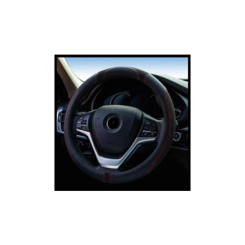 Sziklai Kormányvédő, fekete bőr, piros varrással, 37-39 cm autós kellék 1 kép