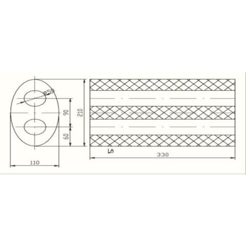Sziklai Univerzális ovál kipufogódob, O50, 350x210x120mm, 1beeltolt1ki