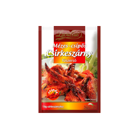 Lucullus fűszersó 48g Mézes csípős csirkeszárny Élmény minden falatra – a Lucullus Mézes csípős csirkeszárny fűszersó egy izgalmas egyensúly az édes méz és a tüzes paprika között, amely ropogós külsőt és ízes, szaftos belsőt eredményez. Ízprofil