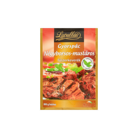 Lucullus gyorspác 37g Négybors-mustár Praktikus és ízletes megoldás, amely percek alatt ízprofilos páclévé alakítja a húst. A Négybors-mustár gazdag, pikáns aromája kiemeli a hús természetes ízét, miközben a 37 g-os zacskó praktikus és könnyen kezelh