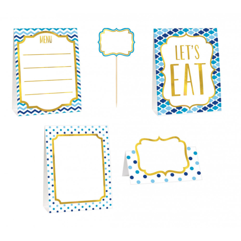 Asztali mini dekoráció szett 12 db-os Anyaga: kartonpapír Tartalma: - 3 db menü kártya 22,2 cm - 3 db kártya 10,1 cm - 6 db pálcika 17,7 cm