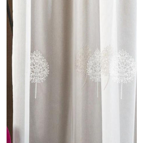 100%polieszter, 80cm magas, 110cm széles, tetején bújtatóval, pálcára fűzhető,modern hímzett mintázatú törtfehér voila kész függöny, vasalást nem igényel,