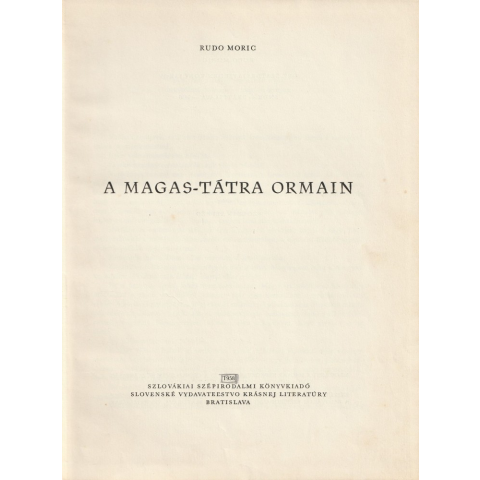 Szlovákiai Szépirodalmi A Magas-tátra ormain antikvárium - használt könyv 1 kép