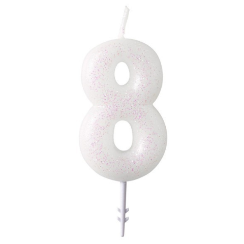 Születésnap White, Fehér csillámos gyertya 8-as 6,5 cm